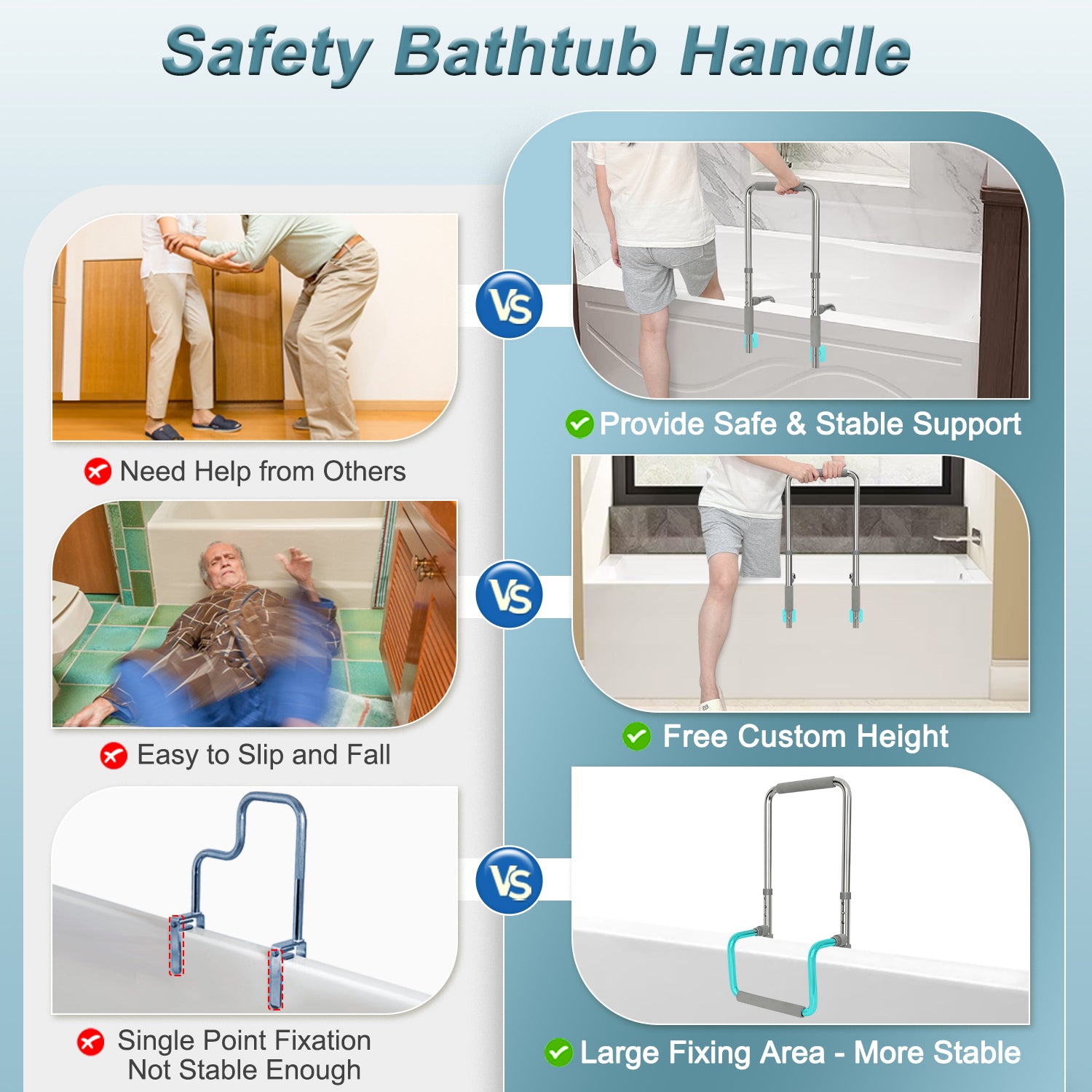 - 【Bathtub Safety Rail】The tub grab bar provides necessary bath support for getting into and out the bathtub, ensuring the safety when bath or shower for the elderly, pregnant, handicap and disabled. Tub transfer bar can hold up to 250lb, preventing falls and injuries.