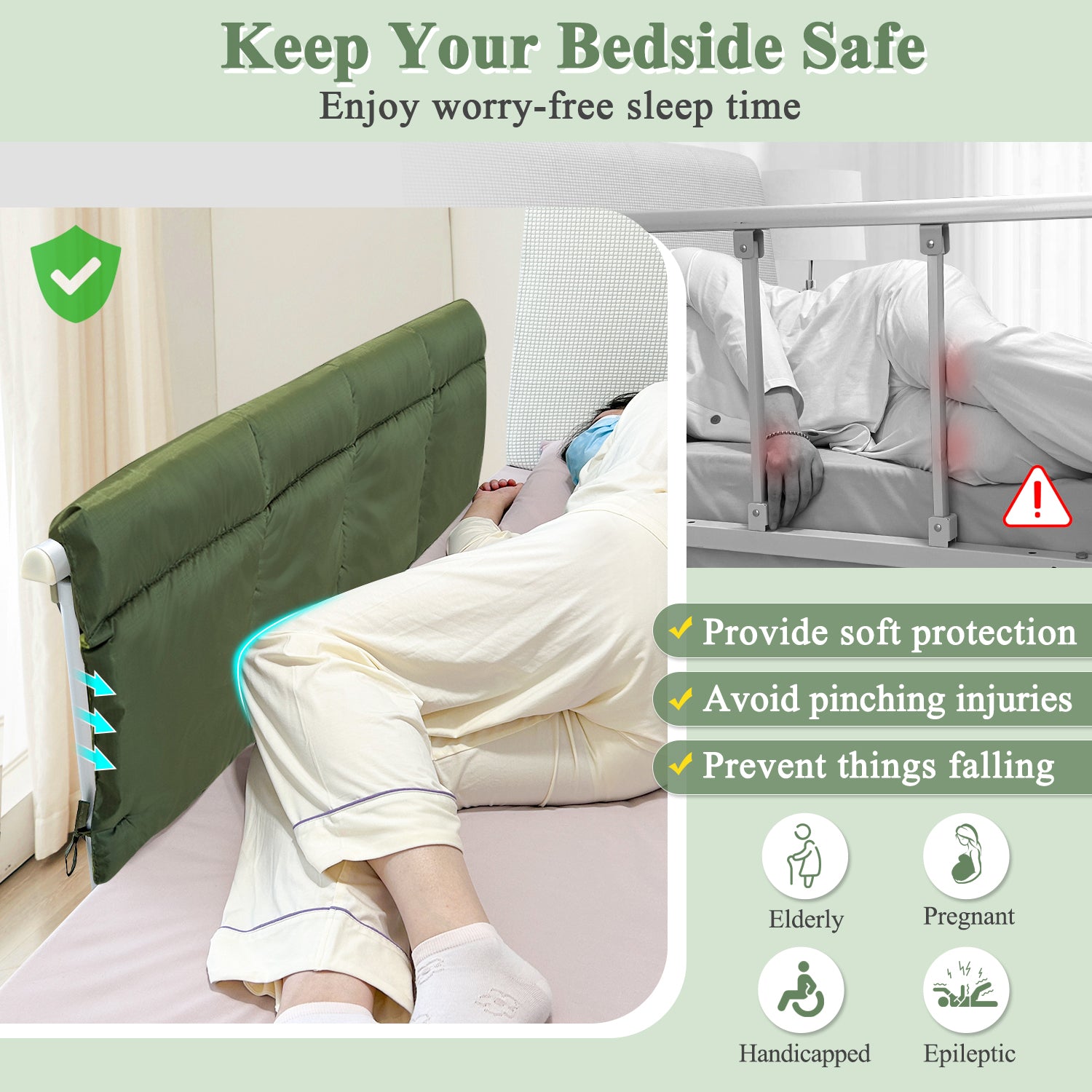 - 【Soft & Comfortable】Filled with a lot of polyester fibre in bed rail cover lining, good resilience, avoid hitting hard bed railings. With green polyester outer layer, fresh and natural, durable, keep more secure night's sleep.