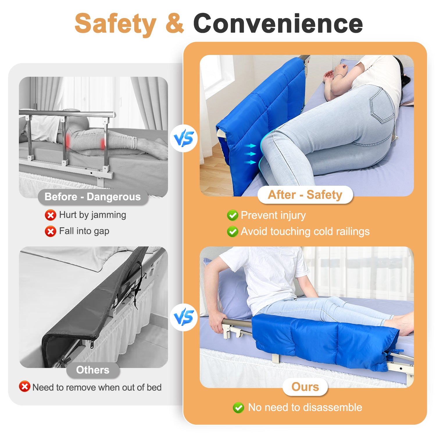 - 【Safety Bed Rail Cushion】Can easily cover on the bed rails, preventing users from falling out of bed or getting stuck in the gaps of the railing. The bed rail pad can effectively protect the safety of the elderly, pregnant women and disabled in bed.
