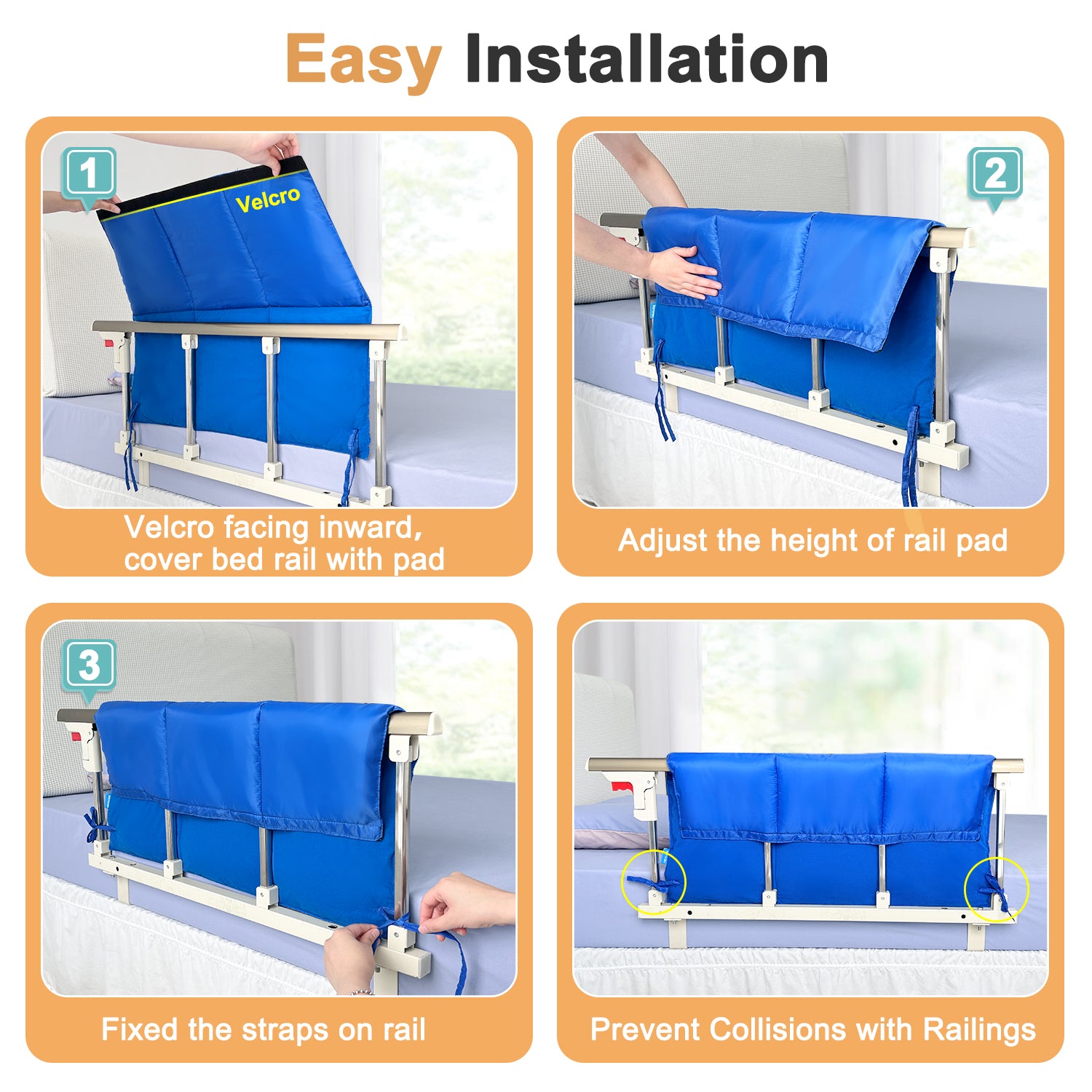 - 【Easy To Install】The side of the bed rail padding has a Velcro that can fit with silk cloth, making it easy to install and remove. The bed rail cover has foldability, convenient storage, and saves your space.