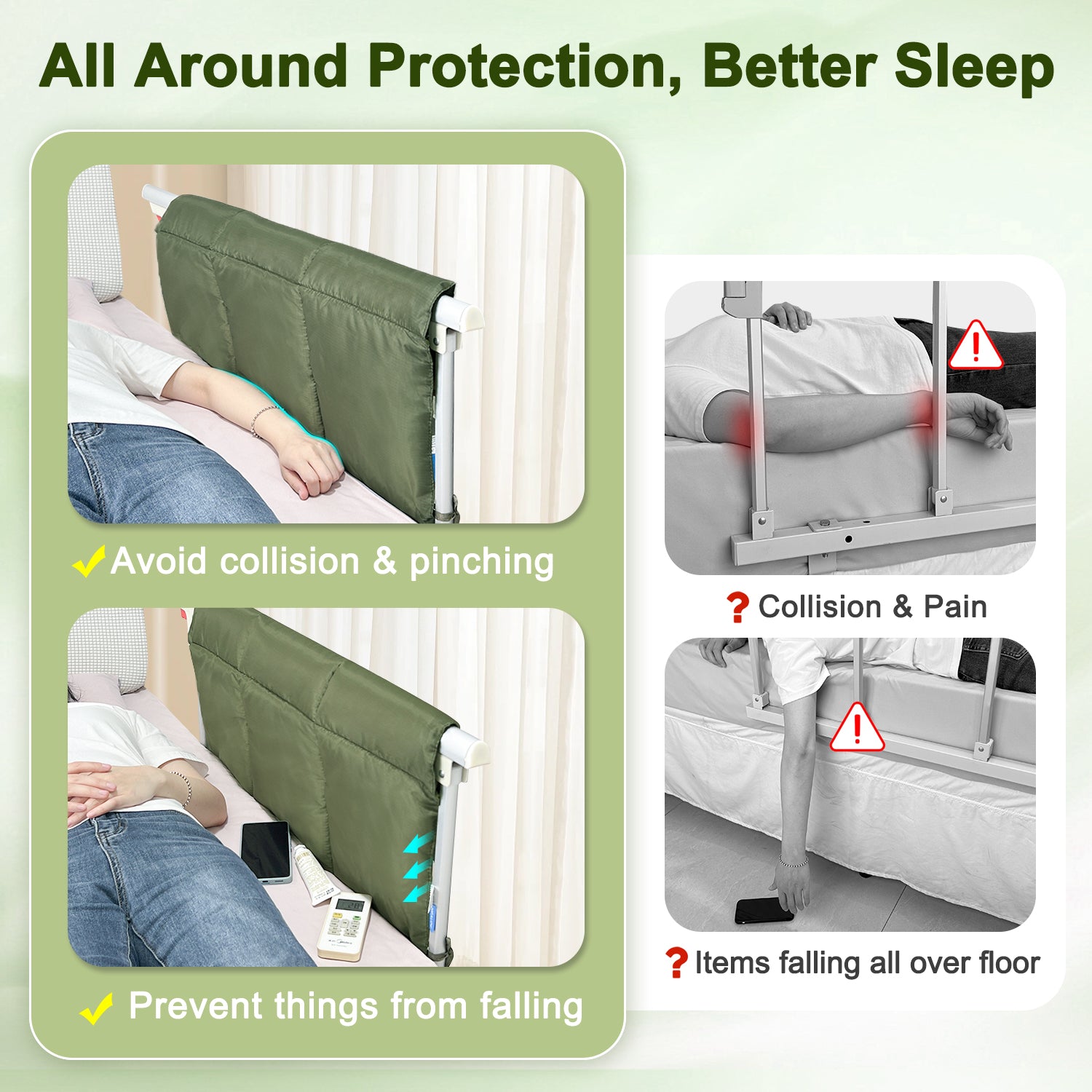 - 【Improve Safety】Bed rail pad can be quickly covered on railing, provide effective cushion, prevent hands and feet from accidentally falling into gap between bed rail. Avoid the elderly adults from hurting into rails, provide reliable protection.