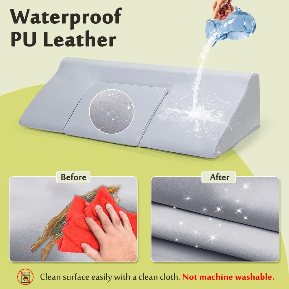 - 【Waterproof PU Leather】Outer stain resistant material allows you to clean easily with a clean towel. Stop worrying about sweat stains or drinks staining the sponge inside, help to keep your pillow clean and sanitary, and reduce nursing stress.